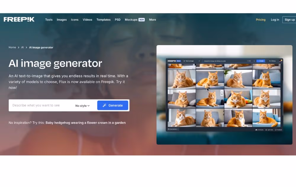Freepik offers a unique AI-powered image generator that’s integrated into its platform, known for providing high-quality stock images. It’s ideal for designers who need quick access to customizable visuals.