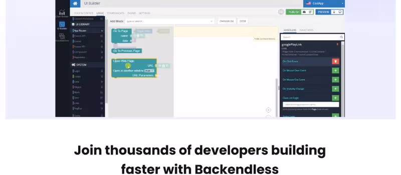 Backendless promises to build apps at lighting speed. This visual app development platform offers low-code and no-code tools for app and web developers of all experience levels. Backendless features include a component-based UI Builder, real-time database, user authentication and management suite, push notification and in-app messaging console, Codeless logic builder, API management, and much more.
