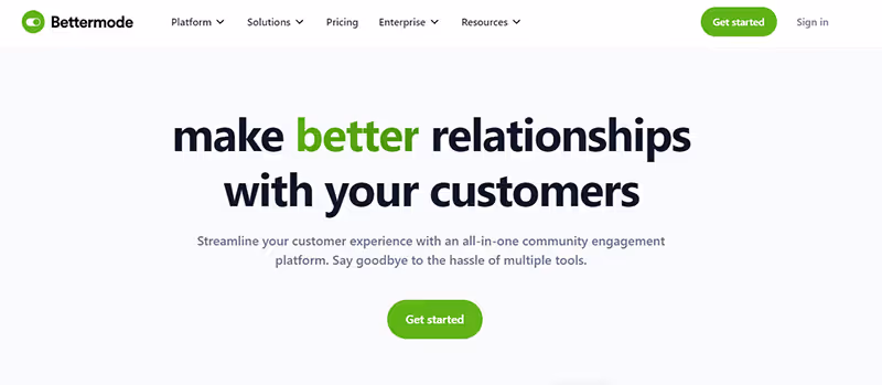 2. Bettermode An all-in-one community platform for startups, Bettermode offers a wide array of features to support rising businesses. It has an intuitive interface, which makes it easy for brands to create forums, events, Q&As, product updates, and many others. It quickly integrates with business tools such as HubSpot, Zapier, and Salesforce.