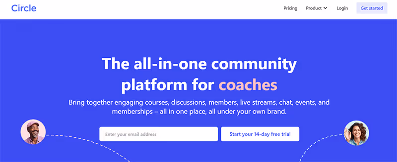6. Circle A one-stop-shop community platform, Circle lets you create a branded community with a custom domain name. You can host live Q&As, masterclasses, coaching, and many others. It offers advanced analytics features, product integrations, and multiple revenue options.