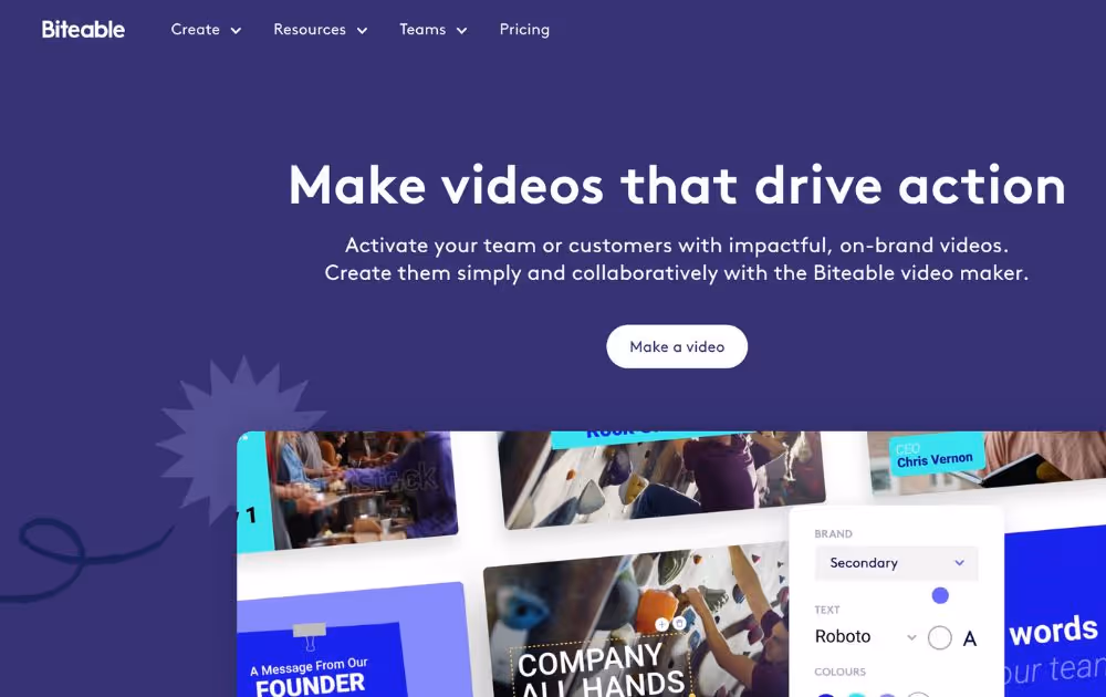 Biteable is a software that lets its users create animations from stock templates. You can find images, video clips, backing tracks, and other tools to help create addictive content. Compared to most motion graphics software free online, it has a low learning curve. So, you can easily tailor videos to your brand's needs.