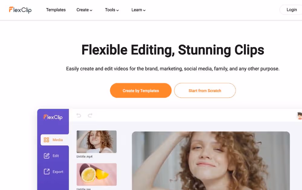 FlexClip may be the program for you if you want professional-grade motion graphics clips. Plus, it's one of the best motion graphics software for newbies. It has powerful yet simple tools that let you trim videos, add text and music, make GIFS, remove backgrounds, and more. You can easily choose between their templates and find the best fit for your brand. They have over four million stock assets to choose from, so you won't have to worry about finding the right one for your video.