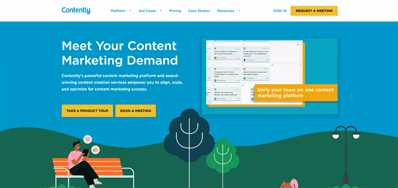 9. Contently: Professional Content Marketing If you want to use the writing platform that professional writers and content creators use, go to Contently . Renowned for its focus on content marketing, it is the ideal writing platform for connecting with businesses seeking high-quality and branded content. You'll find many freelance writers, journalists, and agencies using this platform.
