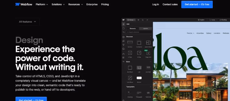 Webflow website builder offers advanced customization features and professionally-looking templates. Its free plan has the fewest ads—a small, unintrusive "Powered by Webflow" at the bottom of the page. However, you must be aware that Webflow has a steeper learning curve than other website builders. It's best suited for those with some web design experience or a willingness to learn.
