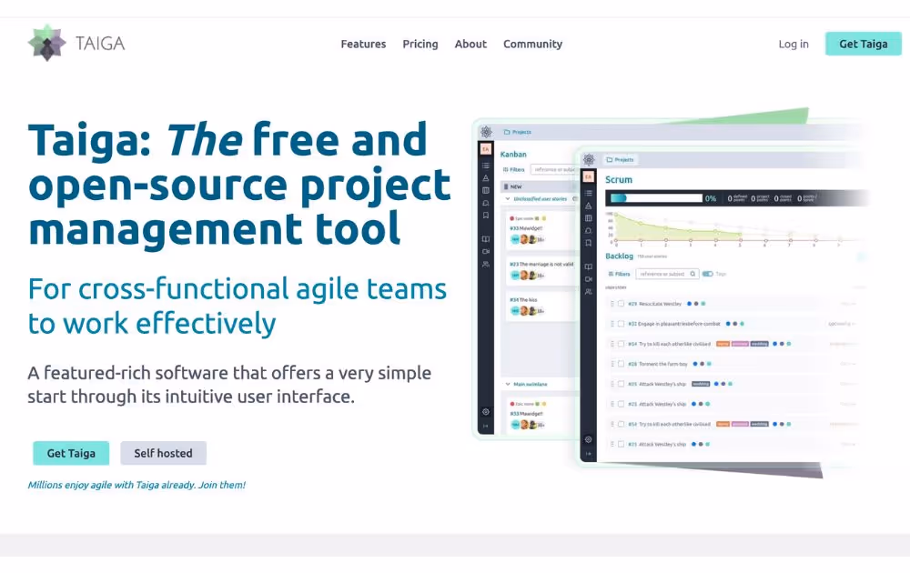 Next, Taiga.io is one of the most popular ClickUp alternative open-source tools. This tool has a sprint task board that can easily convert into a Kanban if needed. Besides this, it also has a team performance dashboard that can give teams full visibility of project timelines, as well as a bug tracker.