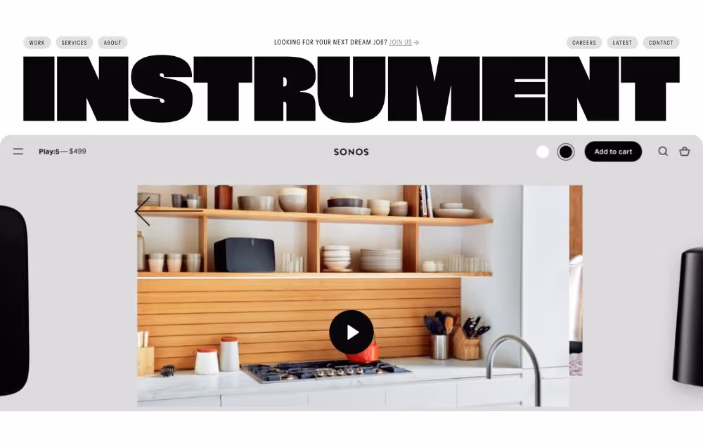 First on our design agency website list is Instrument. This company is a highly regarded agency specializing in web design and marketing, catering to large corporations and top brands. They offer various services, including web design, UI/UX design, software development, branding, and marketing consultation.