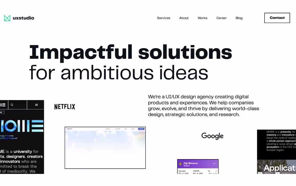 UX studio is an award-winning digital product and ecommerce design agency based in Europe, specializing in user-centric eCommerce web design. They have received recognition from Clutch Global Award and are ranked among the top product design companies.