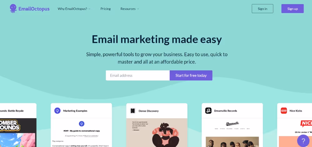 If you want simplicity, EmailOctopus is a great starter email marketing platform. You can use its forms and landing page tools to capture leads. Then, you can move the leads to your workflow to nurture your leads and convert them into customers. Additionally, you can also build your emails with its drag-and-drop editor. Finally, you can customize and personalize your emails by segmenting audiences!