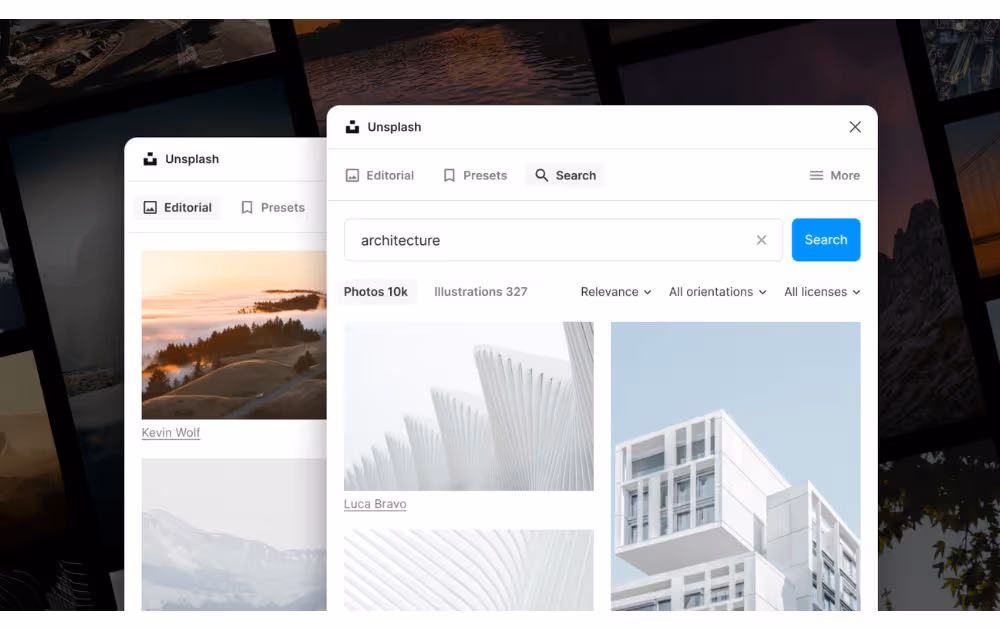 Next on our list is Unsplash. This plugin provides users access to high-quality stock photos they can use in their Figma designs. How does it help? For one, you won’t need to search outside Figma to find the stock photos you need. In addition, it can also speed up the process of designing prototypes using real images.