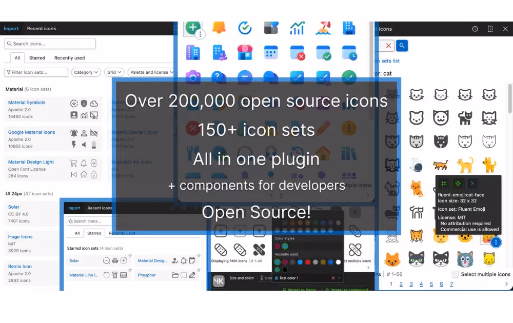 If you need icons in many of your designs, check out Iconify. This plugin offers icons that are all open-source and come in a wide range of designs. In fact, it provides more than 150 icon sets, and all its icons reach over 200,000. Because they’re open-source, you can use them without additional costs. With this plugin, you won’t need to manually download and upload icons, helping you save time.