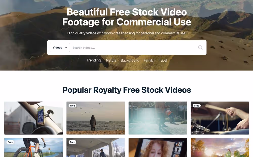 Aside from beautiful images, Pixabay offers free video stock footage for commercial or personal projects. The platform provides a clean interface where you only need to type the kind of video you want, and options are shown in seconds. You can use Pixabay content without alterations, provided that you don’t sell EXACT copies of it.