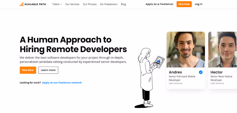 Distinguishing itself as a premium source of remote web developers, Scalable Path focuses on quality and not quantity. It uses a stringent screening process to ensure that the developers on the platform meet high standards. It offers a wide selection of specialized web development roles that cater to specific project requirements.