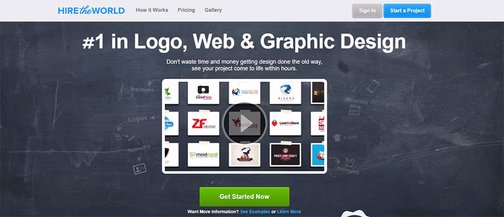 A design network that offers a multitude of graphic design services, HireTheWorld specializes in logo designs, book covers, and website designs. Still, you can use it to get any type of visual asset your business needs. You can run a contest and wait to receive submissions from designers all over the world.