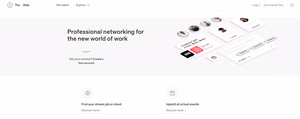 A platform for finding creative collaborators, The Dots offers a wide variety of services. It lets you hire talented individuals for your team, network with like-minded professionals, and get advice from its active community. Be among the ranks of the world's top brands that use this platform, such as Google, Spotify, and Airbnb, to name a few.