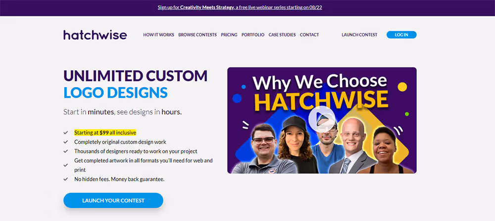 Calling themselves a crowdsourced creative agency, Hatchwise connects businesses with a community of designers and other creatives. Like DesignBro, you can run contests for any of your design projects, such as web design, logo, and many others. This makes it an affordable option as you can set your budget for a specific contest or hire from anywhere in the world.