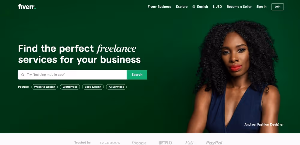 The best site to find a freelancer is going on a freelance platform like Fiverr. You can browse for freelancers when you search “logo design.” From there, you can select a freelancer to help you design your fantastic logo. An alternative to browsing is choosing “Fiverr Business.” With this, you can find vetted talent.