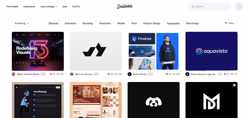 If you want a design-dedicated designer team, Dribbble is a great place to browse professional graphic designers. You can search for marketing design inspiration since Dribbble is a graphic design portfolio site. Once you identify the aesthetic or design style for your business, you can hire a marketing graphic designer by posting a job ad. However, some marketing designers post their contact details on their portfolios to contact them faster.