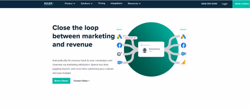 Individual: $49/month Professional: $149/month Business: $289/month Standard: $449/month 2. Ruler Analytics Ruler Analytics is a marketing measurement and attribution platform that connects marketing, sales, revenue, and customer data. The platform tracks every visitor in multiple sessions like traffic sources, keywords, etc. When an opportunity is marked closed in your CRM, Ruler Analytics automatically sends the lead's value or sale to Google Analytics reports.