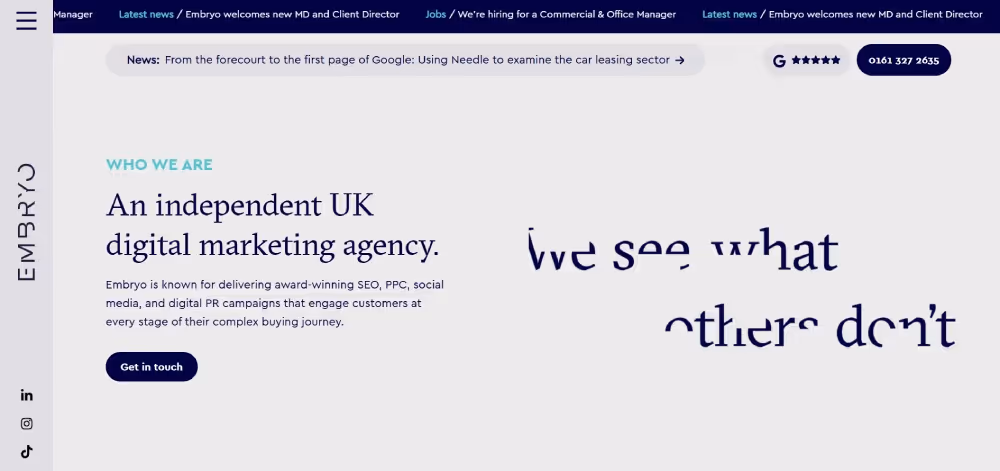 10% increase in form conversions 18% decrease in cost per conversion 8% increase in all-up conversions 8. Embryo The UK-based marketing agency Embryo has been in business since 2015 but brings along a wealth of expertise when you’re partnering with them. As PPC Consultants, they will help you with the following: