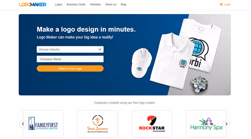 8. LogoMaker Offering both DIY and hire features, LogoMaker lets you create your own logo or have the pros do them for you. The company has a team of professional logo designers available for hire. You'll be asked to fill out a design brief, and then a designer will be assigned to you and contact you about your project. Despite its name, LogoMaker also provides additional business services such as domain names, websites, and an array of stationery and merchandise where you can print your logo.