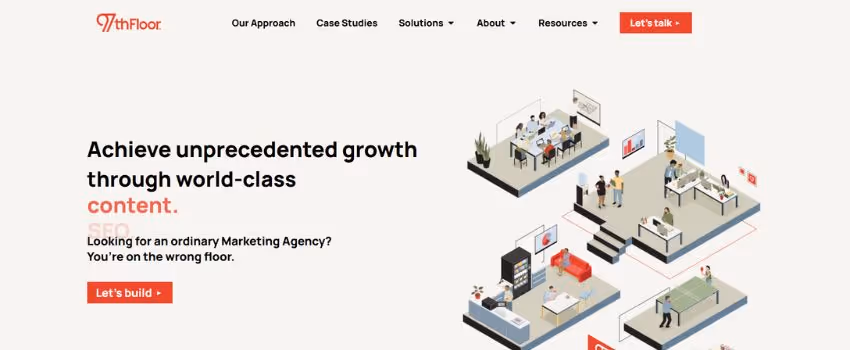 10. 97th Floor Screenshot from the 97th Floor website 97th Floor’s tagline is “Achieve unprecedented growth through world-class design, advertising, SEO, and content.” This data-driven digital marketing service excels in crafting high-value content aligned with its core “Great Marketing” philosophy: empathy, innovation, and profitability. Their team holds extensive customer knowledge and industry analysis across various sectors.