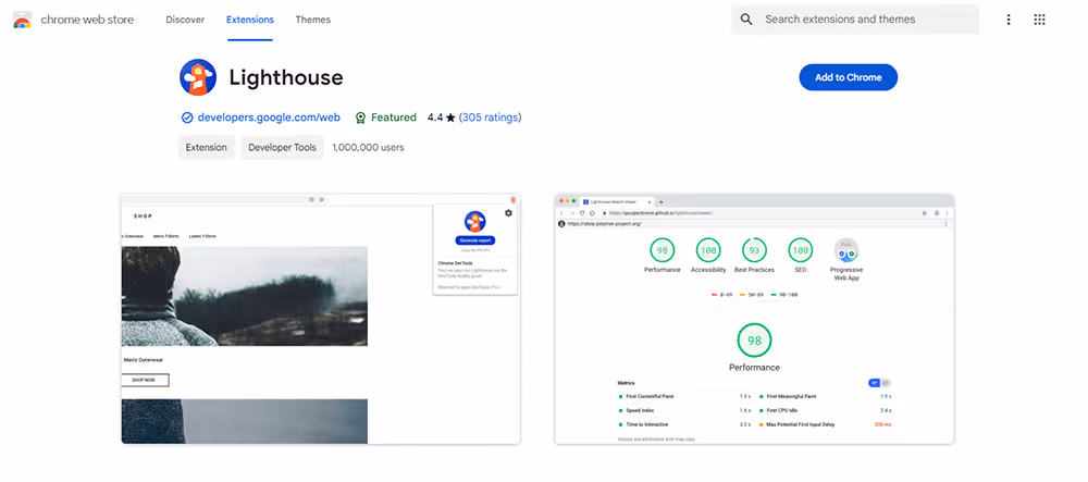 Another useful SEO Chrome extension, Google Lighthouse, is an open-source automated tool developed by Google. It aims to improve your web pages' quality by providing valuable insights that can improve your SEO ranking and performance. It measures crucial user experience metrics that are part of Google's ranking factors.