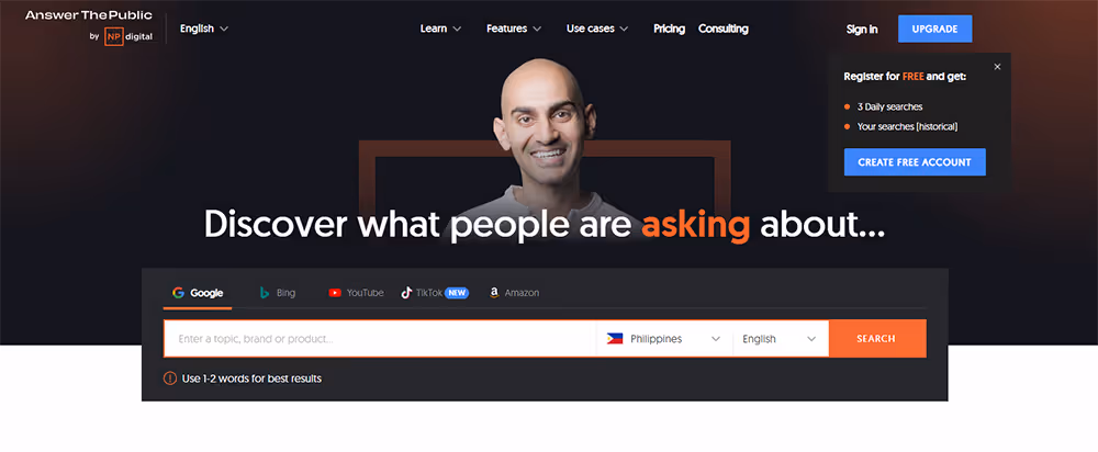 A valuable SEO tool for content creators, SEO specialists, and marketers is AnswerThePublic. While it serves a different purpose than Semrush, it can still help your business rank on search engines. It offers question-based keyword research, content ideation, visual data representation, long-tail keyword discovery, and many others.