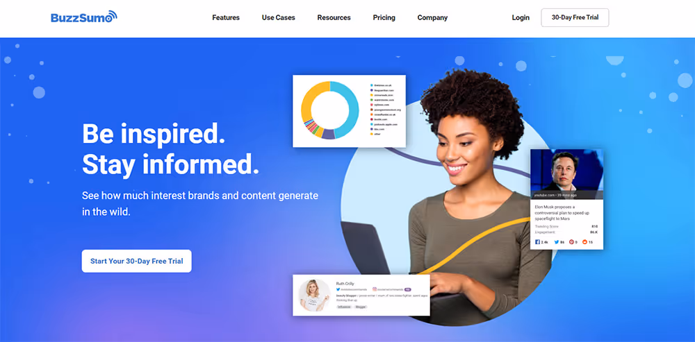 BuzzSumo is a helpful tool for content creators, PR professionals, and social media managers to craft engaging content and monitor brand mentions. You can try its 30-day free trial or get a paid plan with prices that start at $199 per month.