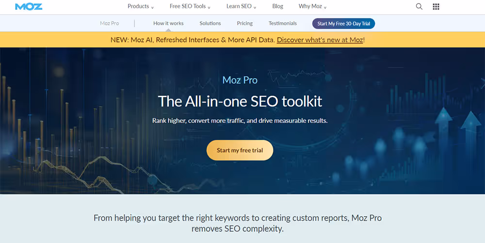 Known for its strong educational resources in SEO, Moz Pro is one of the most trusted names in the industry. It has an active community of SEO professionals who contribute to its forums and discussions, significantly influencing the best SEO practices. Some of its key features include the Mozscape index, spam score, keyword grouping, link intersect, and more.