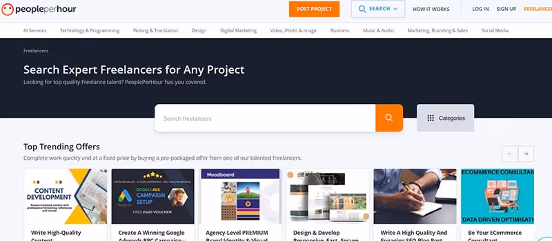 12. PeoplePerHour As the name suggests, PeoplePerHour helps businesses to find professional freelancers on a per hour basis. Millions of freelancers work in different fields, including marketing, journalism, and public relations.