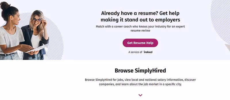 People can browse through SimplyHired even without a profile. However, signing up for an account will give you access to various job tools, such as a resume builder and salary estimator.