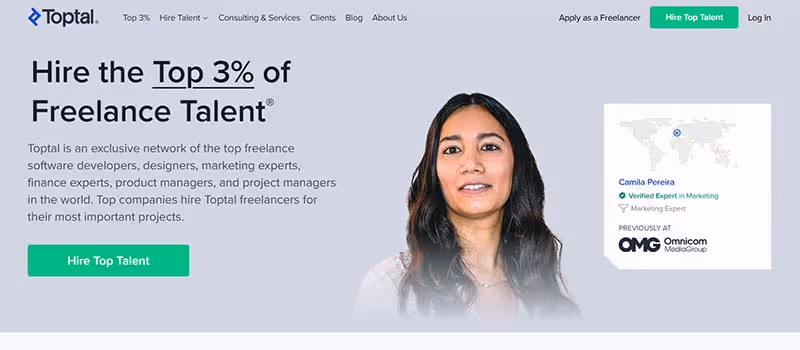 3. Toptal Toptal is one of the top freelance platforms that assists independent professionals in finding work. Experts in software development and project management can primarily benefit from this website. However, the platform has an intense hiring process that begins with an English test and project assessment. Note that only the top 3% of freelancers qualify for the platform. Freelancers who fail the screening process must wait several months before retaking it.