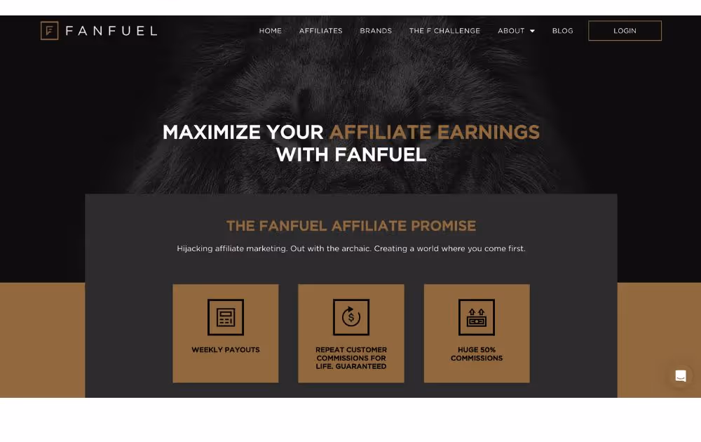 FanFuel affiliate program excels in the fitness niche, offering a high commission rate of at least 40% on sales of its health and wellness supplements. This program not only caters to a broad audience with its diverse product range but also engages health influencers and athletes to boost credibility and sales potential.