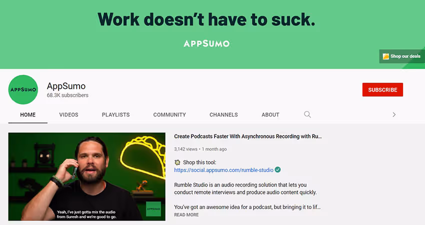 6. Product Tips AppSumo is a successful YouTube channel with more than 68,000 subscribers. AppSumo is generally an affiliate site for software firms. You can post a promo for your software on their website and offer it to their audience. So, a YouTube channel with various entrepreneurial tips does make sense.